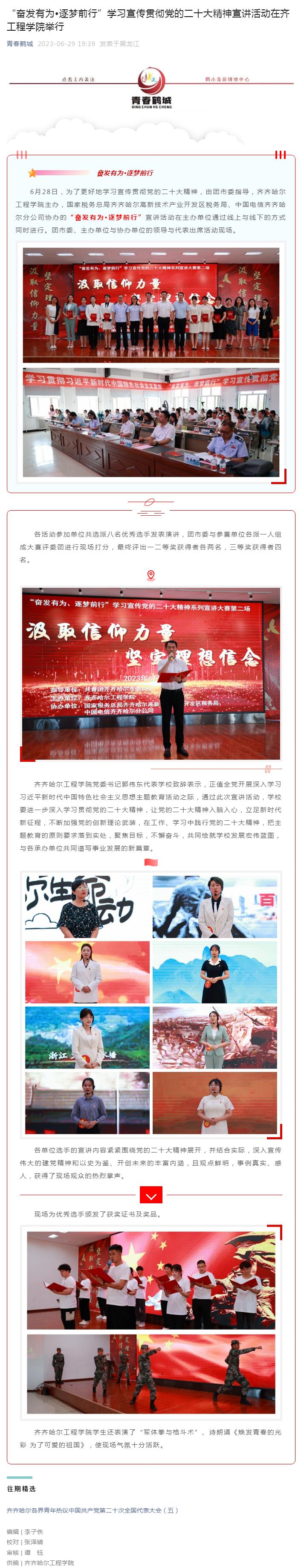 青春鹤城:“奋发有为•逐梦前行”学习宣传贯彻党的二十大精神宣讲活动在齐工程学院举行