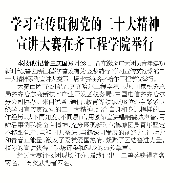 齐齐哈尔日报:学习宣传贯彻党的二十大精神宣讲大赛在齐工程学院举行