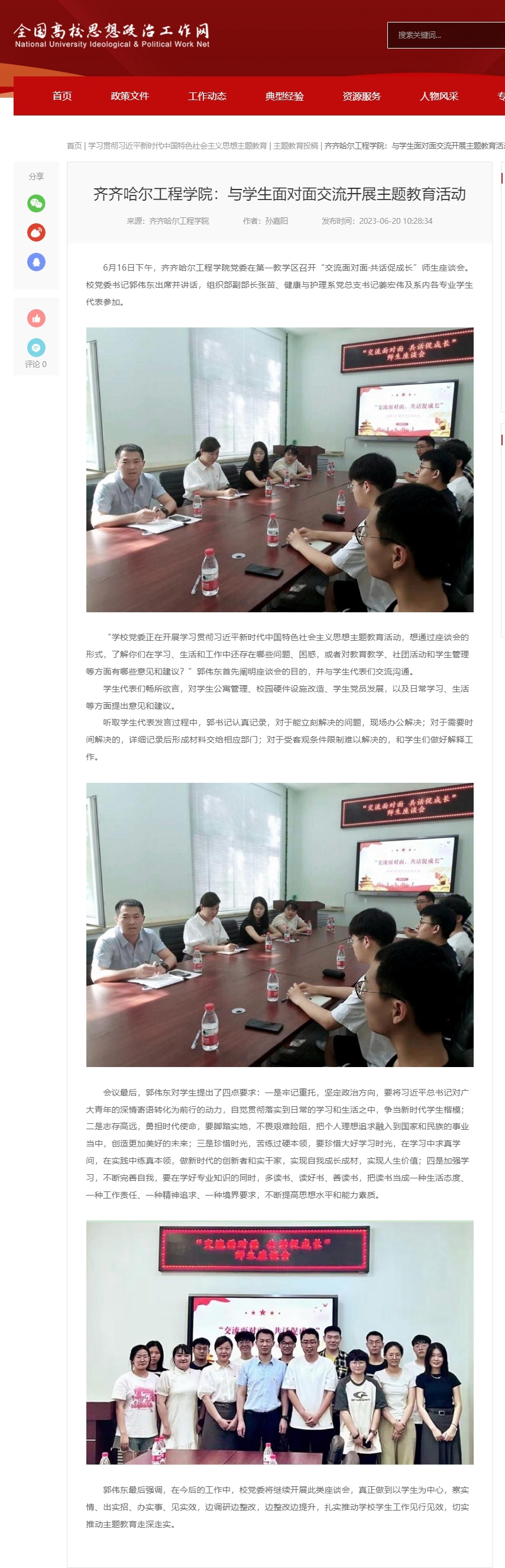 全国高校思想政治工作网:j9在线:与学生面对面交流开展主题教育活动