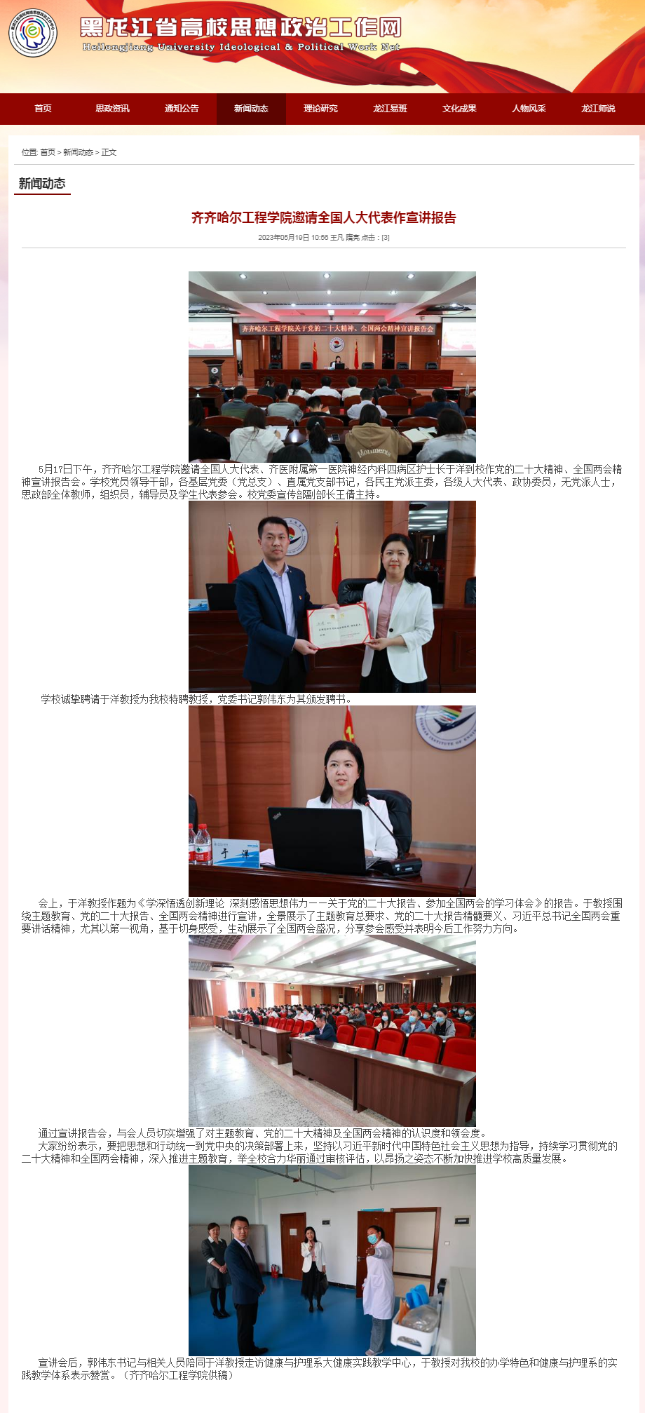 黑龙江省高校思想政治工作网:j9在线邀请全国人大代表作宣讲报告