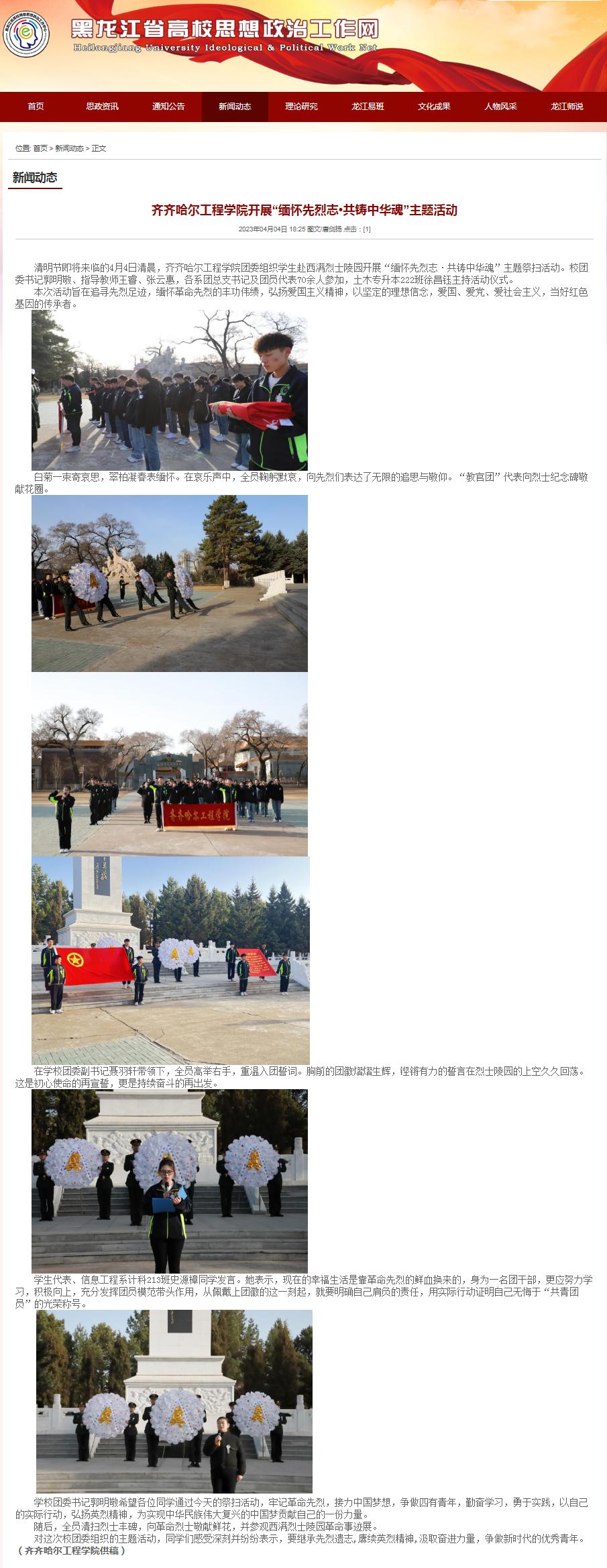 黑龙江省高校思想政治工作网:j9在线开展“缅怀先烈志•共铸中华魂”主题活动