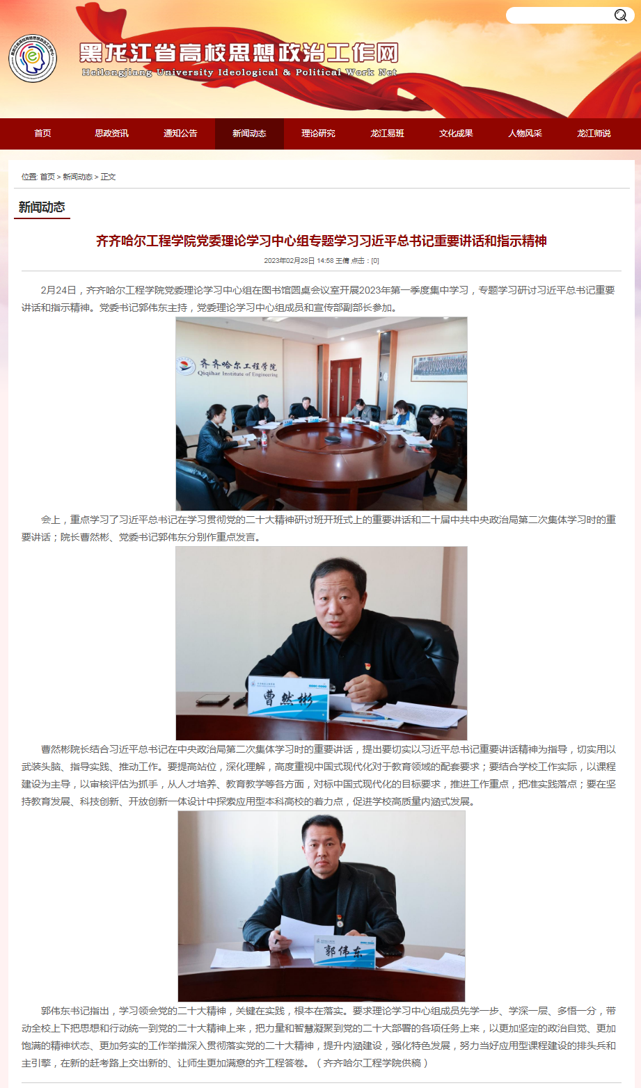 黑龙江省高校思想政治工作网:j9在线党委理论学习中心组专题学习习近平总书记重要讲话和指示精神