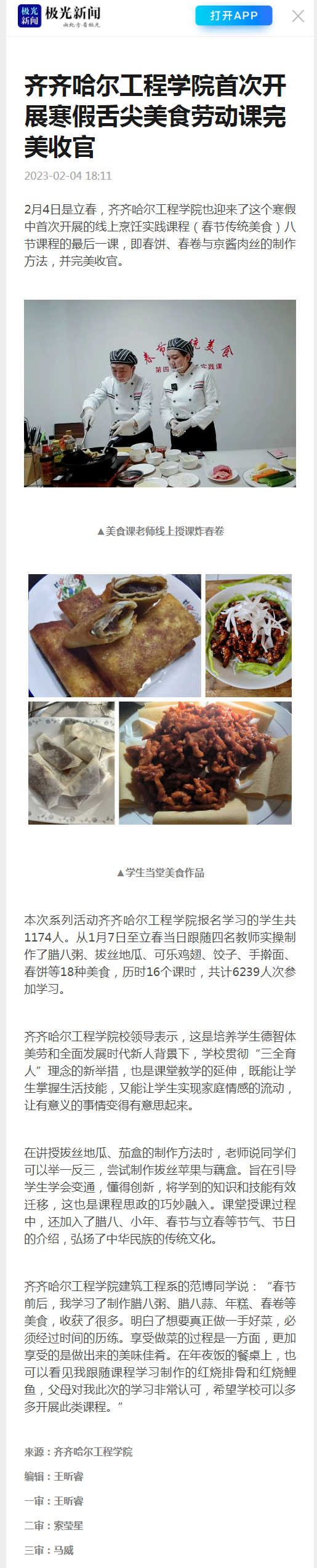 极光新闻:j9在线首次开展寒假舌尖美食劳动课完美收官