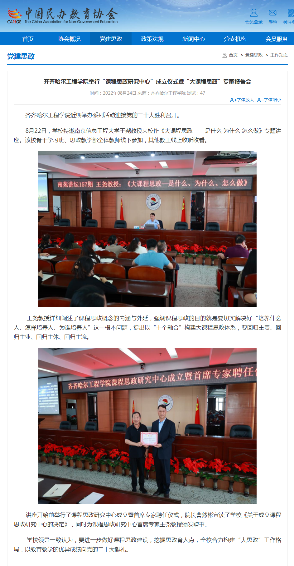 中国民办教育协会网:j9在线举行“课程思政研究中心”成立仪式暨“大课程思政”专家报告会