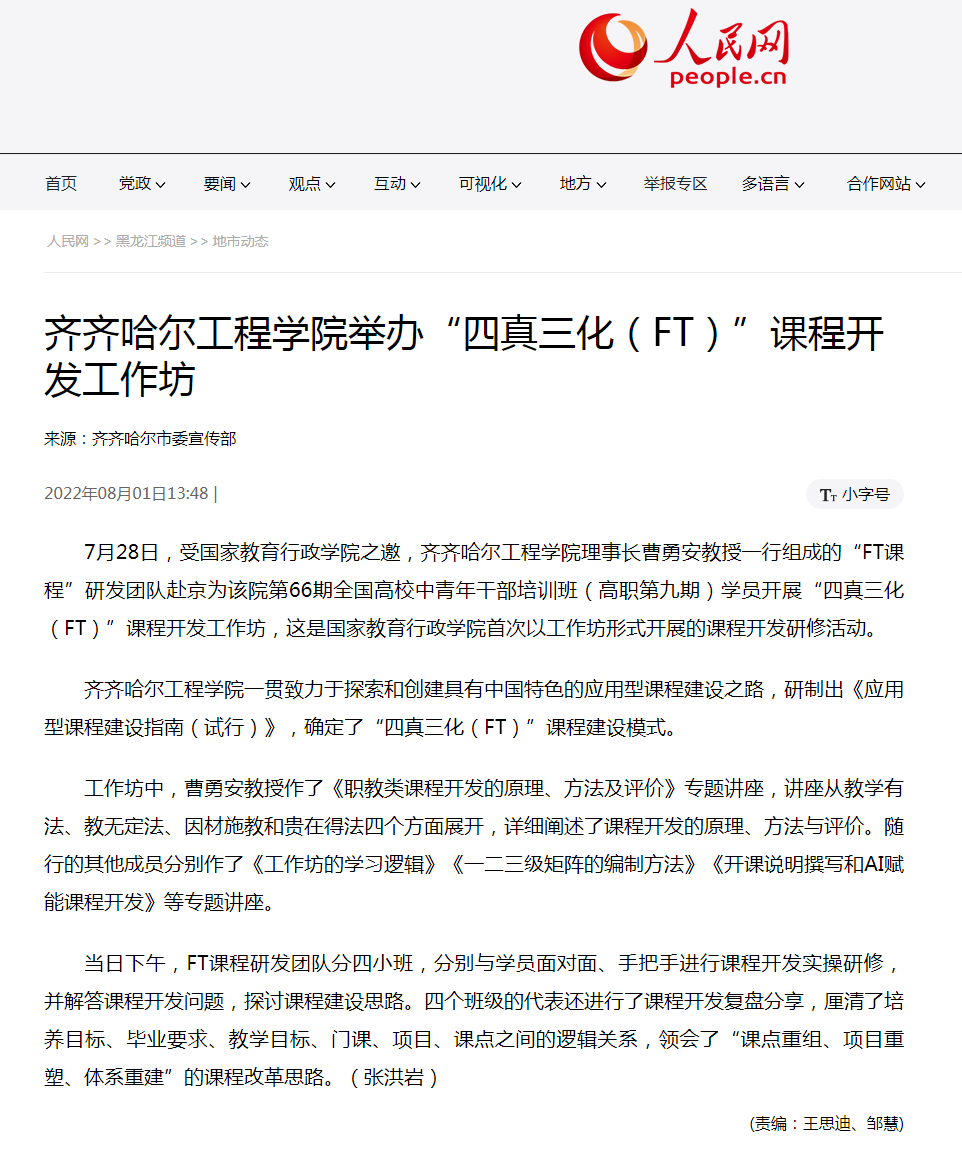 人民网:j9在线举办“四真三化(FT)”课程开发工作坊