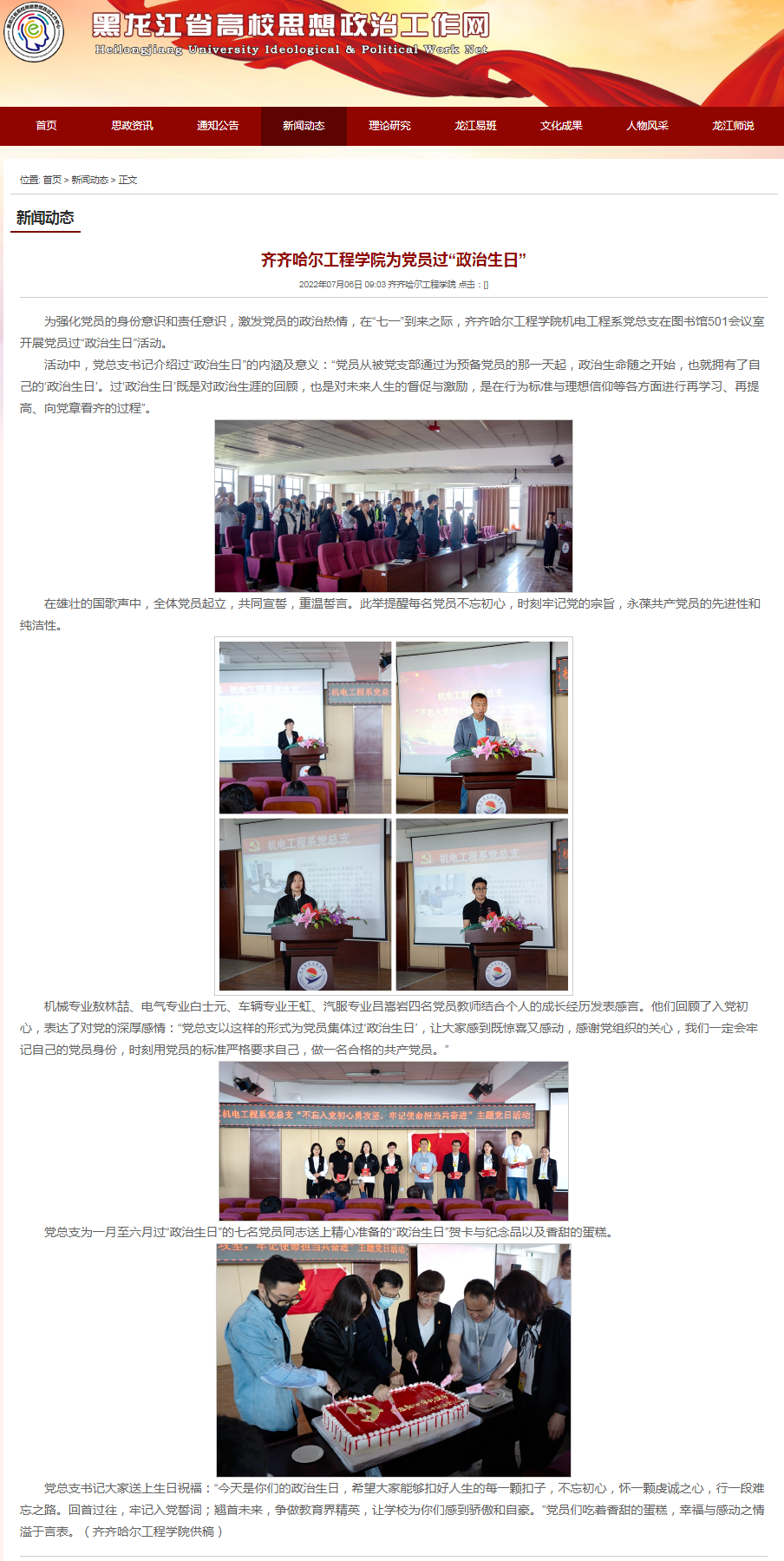 黑龙江省高校思想政治工作网:j9在线为党员过“政治生日”