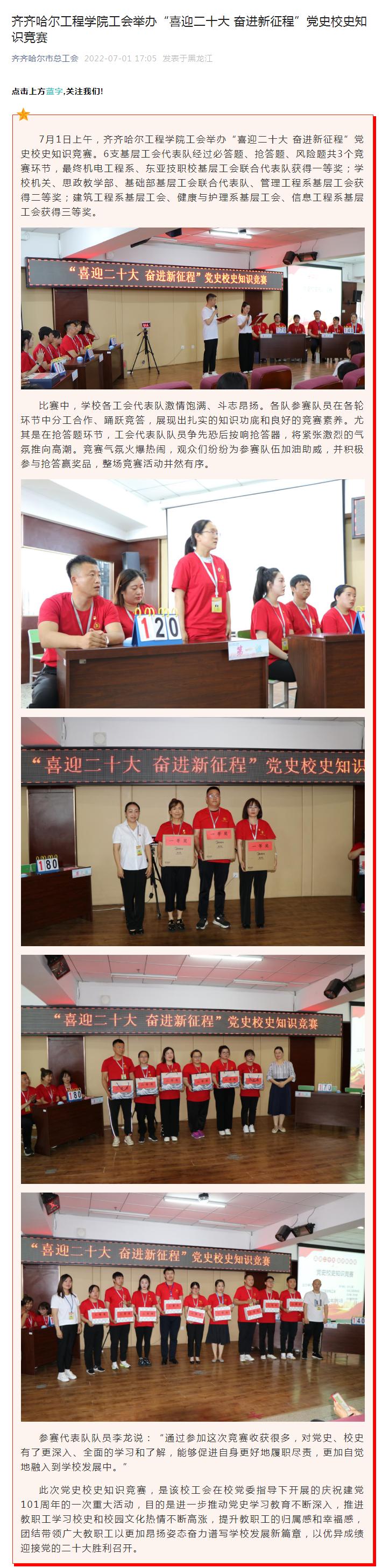 齐齐哈尔市总工会:j9在线工会举办“喜迎二十大 奋进新征程”党史校史知识竞赛