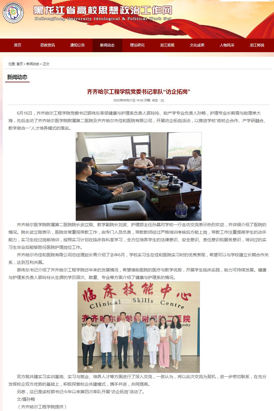 黑龙江省高校思想政治工作网:j9在线党委书记率队“访企拓岗”