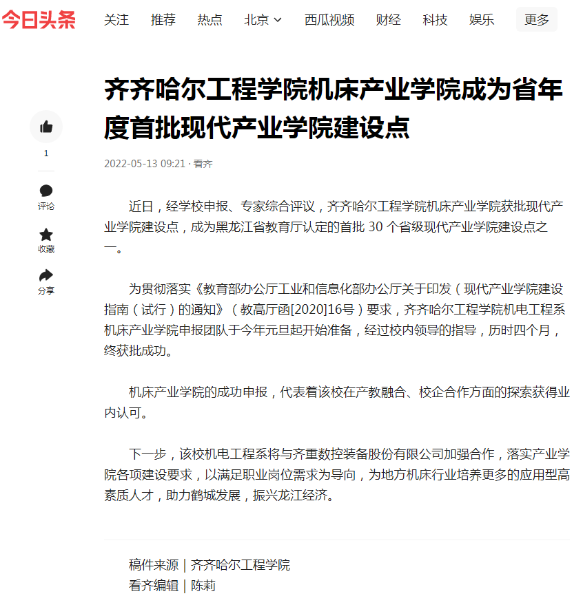 今日头条:j9在线机床产业学院成为省‬年度首批现代产业学院建设点