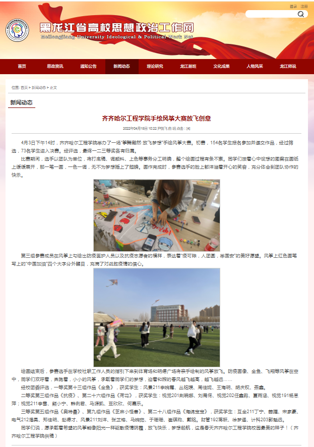 黑龙江省高校思想政治工作网:j9在线手绘风筝大赛放飞创意
