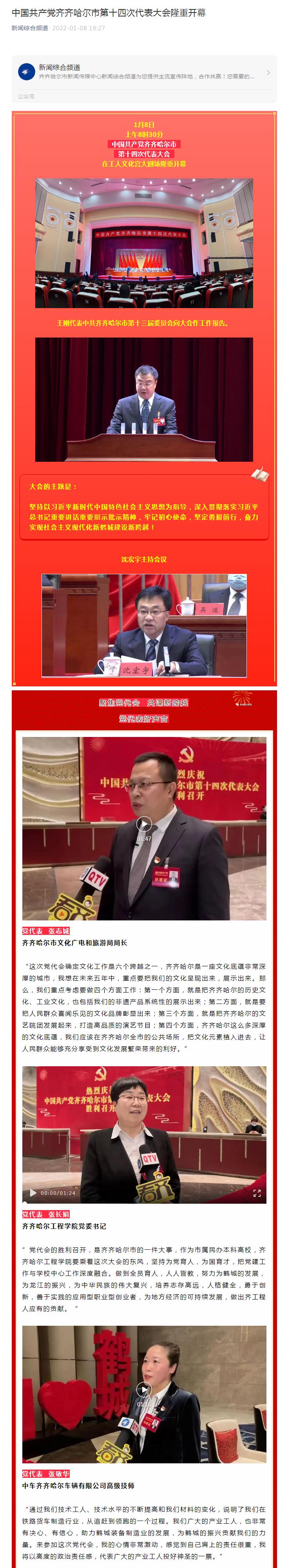 新闻综合频道报道我校党委书记张长娟出席全市党代会的“好声音”