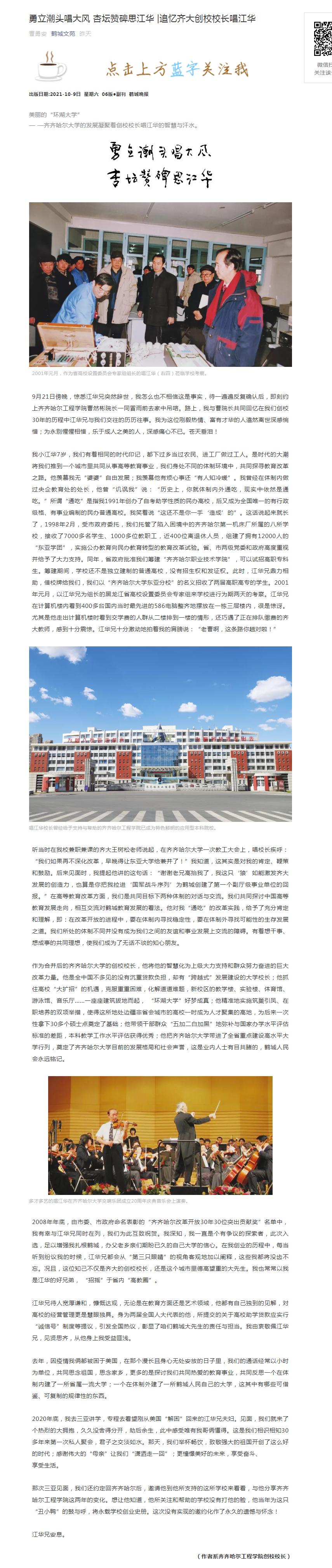 鹤城文苑:勇立潮头唱大风 杏坛赞碑思江华 |追忆齐大创校校长唱江华