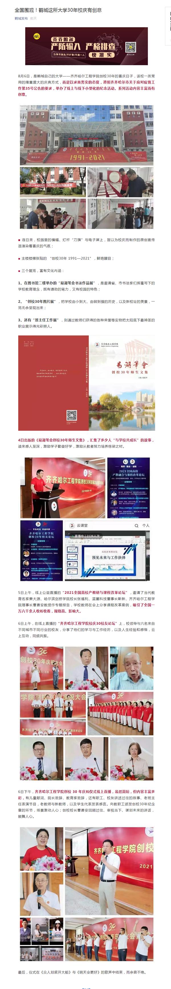 鹤城发布:全国围观,鹤城这所大学30年校庆有创意!