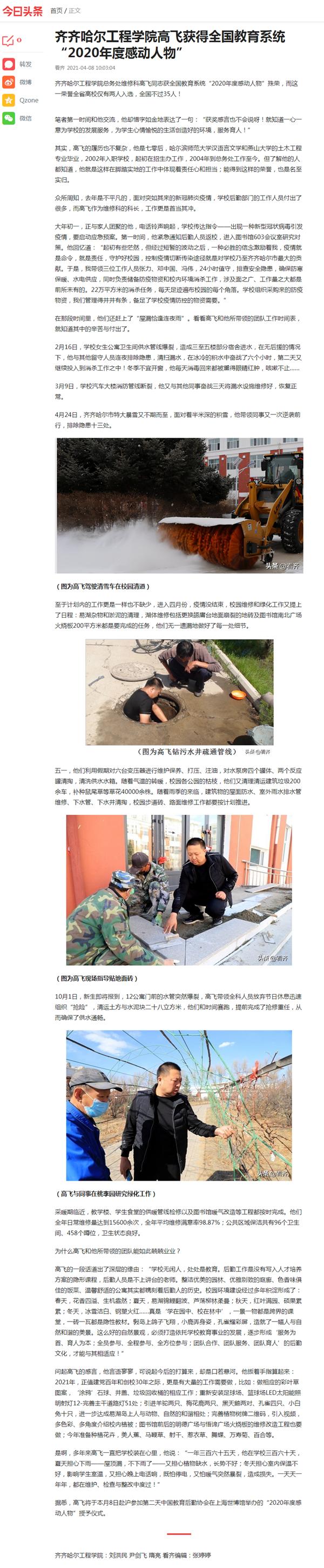 今日头条:j9在线高飞获得全国教育系统“2020年度感动人物”
