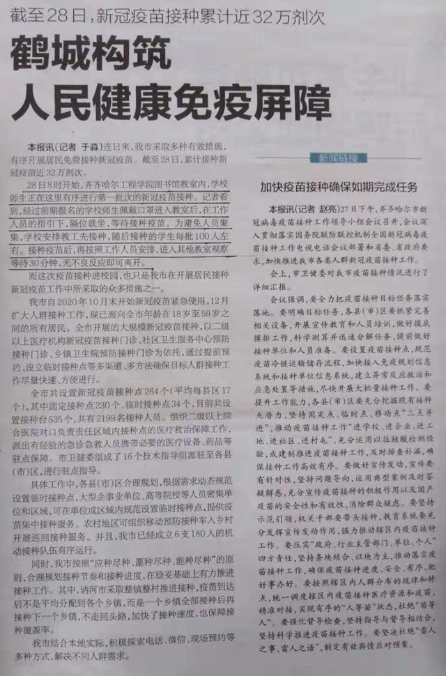 鹤城晚报:鹤城构筑人民健康免疫屏障