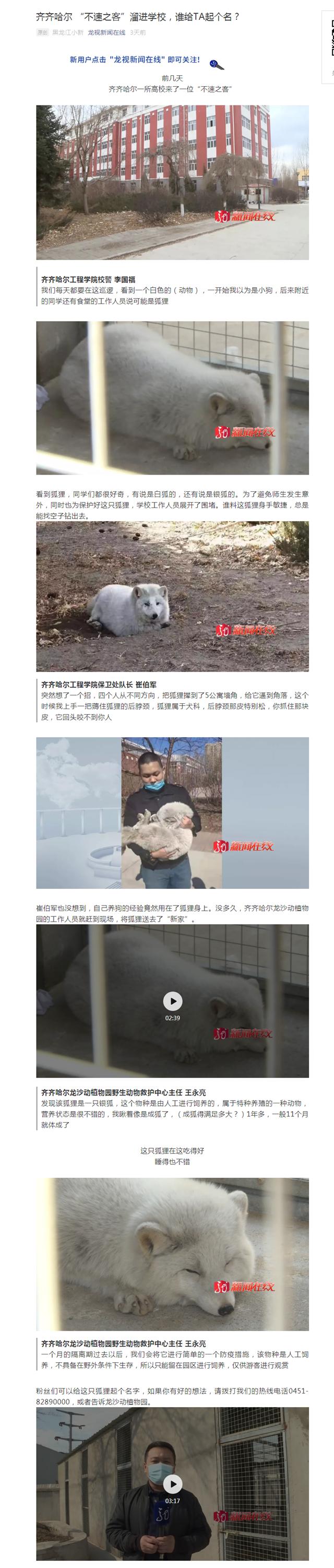 龙视新闻在线:齐齐哈尔“不速之客”溜进学校,谁给TA起个名?