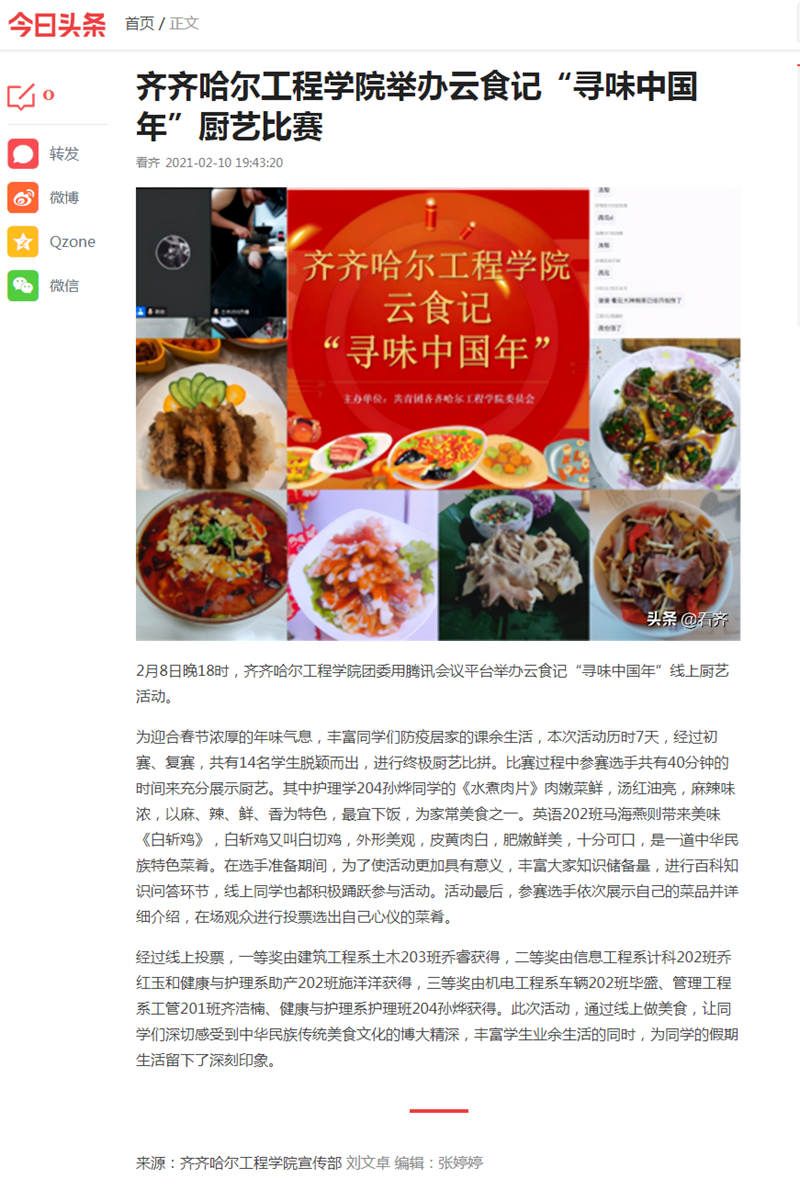 今日头条:j9在线举办云食记“寻味中国年”厨艺比赛