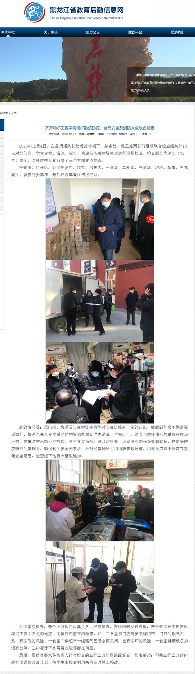 黑龙江省教育后勤信息网:j9在线组织防疫防控、食品安全及消防安全联合检查
