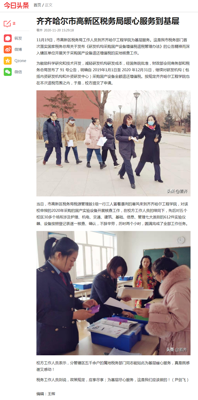 今日头条:齐齐哈尔市高新区税务局暖心服务到基层