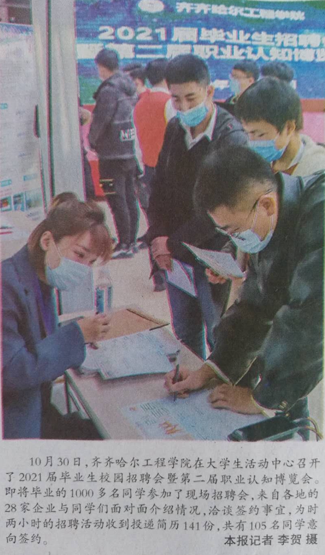 齐齐哈尔日报要闻版刊发学校2021届毕业生招聘会图片新闻