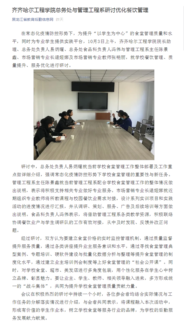 黑龙江省教育后勤信息网:j9在线总务处与管理工程系研讨优化餐饮管理