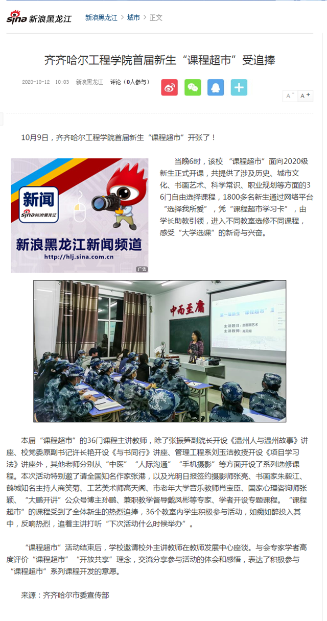 新浪黑龙江:j9在线首届新生“课程超市”受追捧