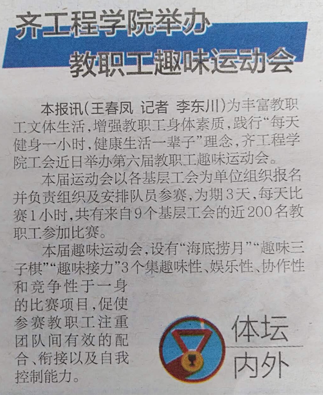 鹤城晚报:齐工程学院举办教职工趣味运动会