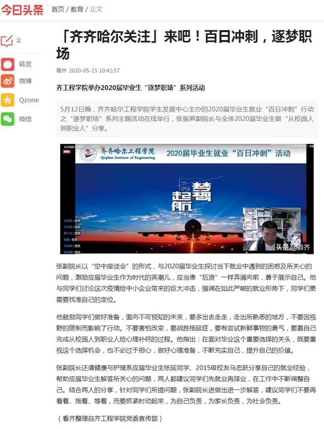 今日头条《齐齐哈尔关注》:来吧!百日冲刺,逐梦职场