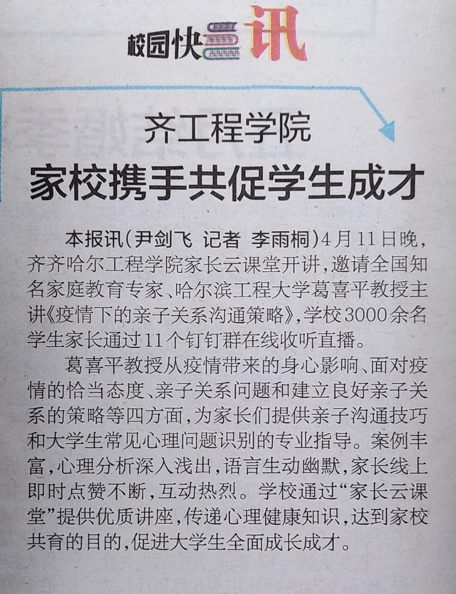 鹤城晚报:齐工程学院家校携手共促学生成才