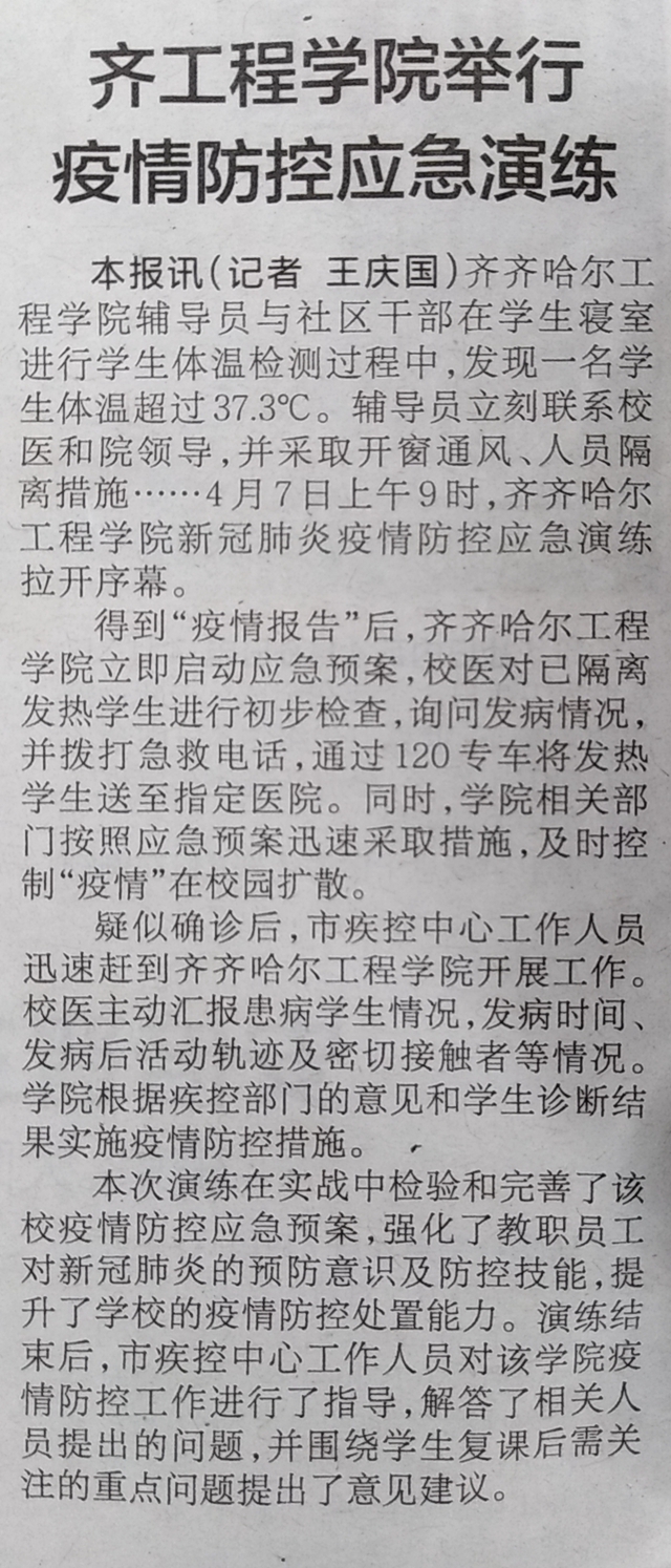 鹤城晚报:齐工程学院举行疫情防控应急演练