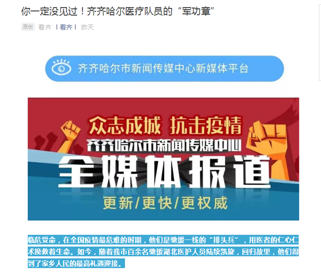 看齐报道学校附属建华医院援助湖北医疗队员的“军功章”长什么样