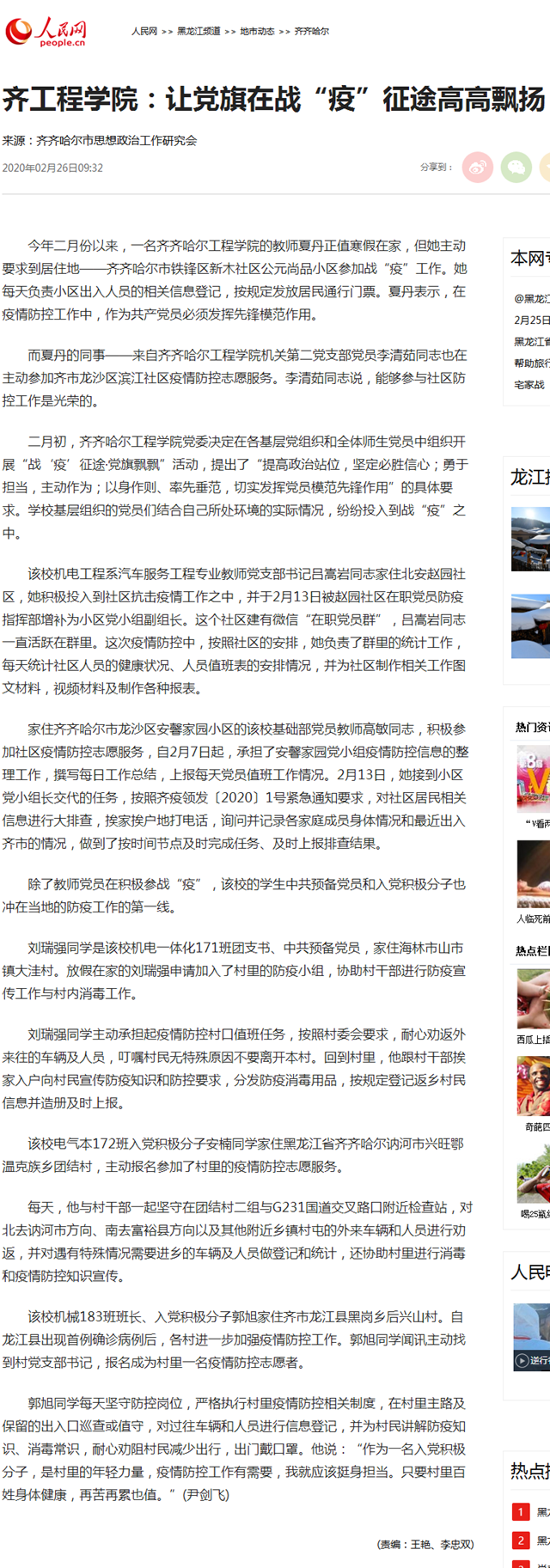 人民网:齐工程学院:让党旗在战“疫”征途高高飘扬