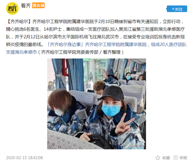 看齐微头条:j9在线附属建华医院组成20人医疗团队支援湖北孝感市