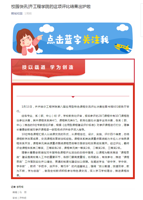 鹤城校园:齐工程学院的这项评比结果出炉啦