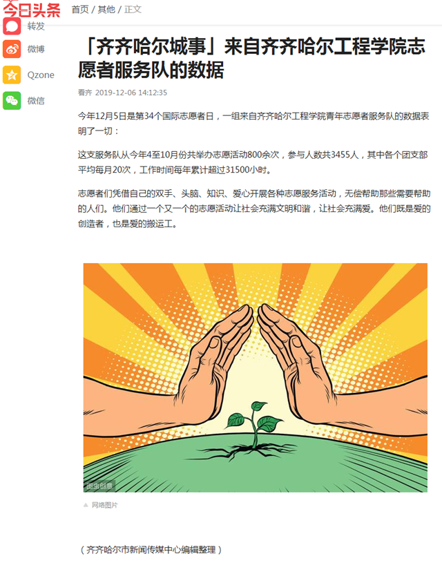 今天头条《齐齐哈尔城事》:来自j9在线志愿者服务队的数据