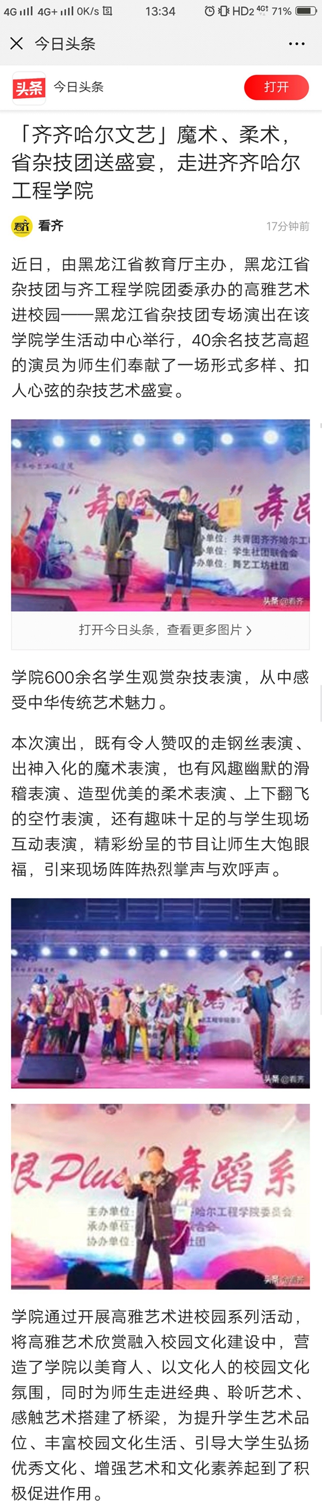 今日头条《齐齐哈尔文艺》:魔术、柔术,省杂技团送盛宴,走进j9在线