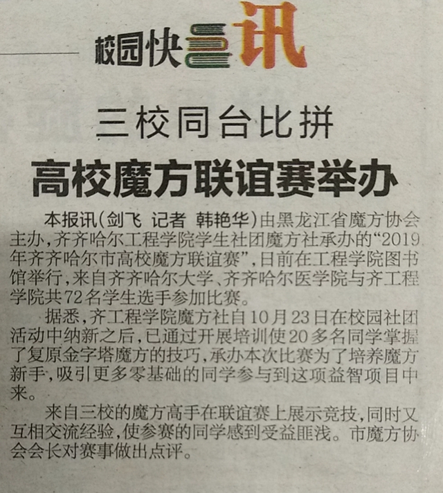 鹤城晚报:三校同台比拼 高校魔方联谊赛举办