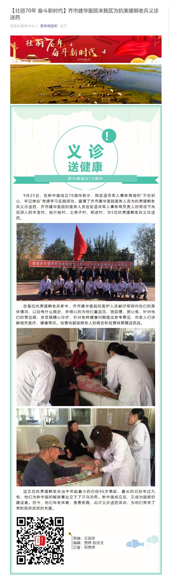 梅里斯融媒体中心:学院附属建华医院来我区为抗美援朝老兵义诊送药