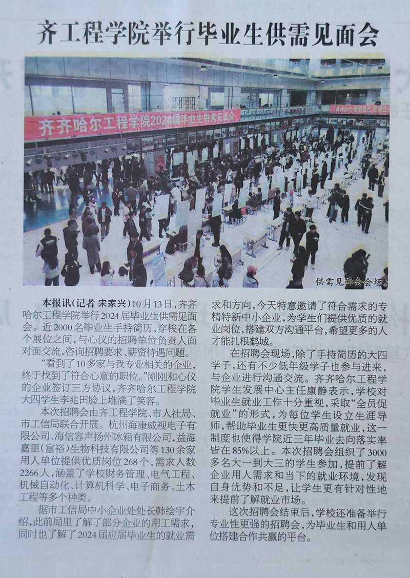 齐齐哈尔日报:齐工程学院举行毕业生供需见面会