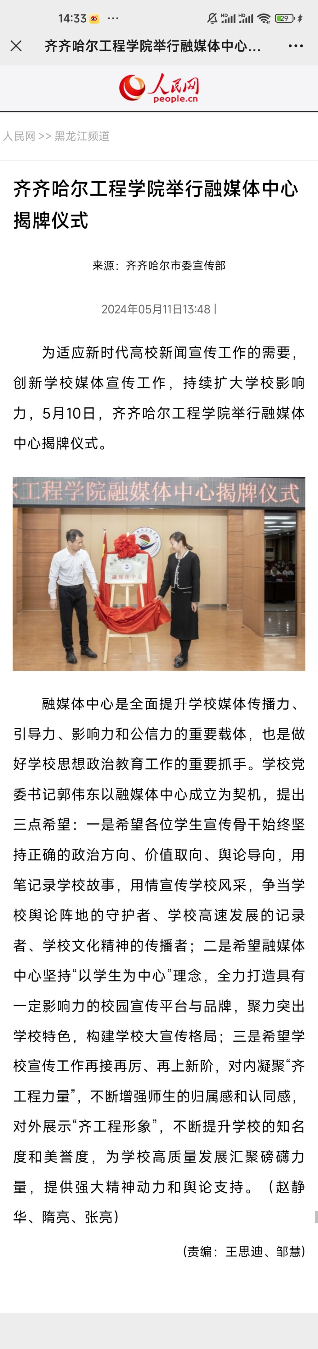 《人民网》报道j9在线举行融媒体中心揭牌仪式