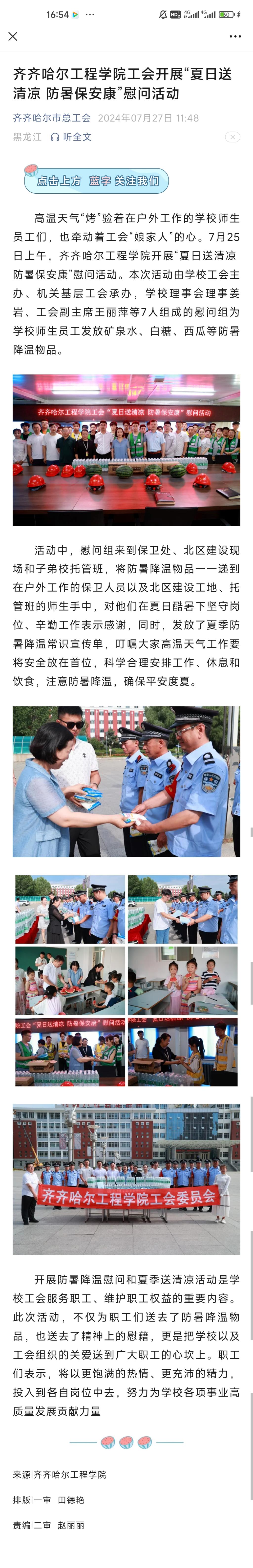 《齐齐哈尔市总工会》报道j9在线工会开展“夏日送清凉 防暑保安康”慰问活动