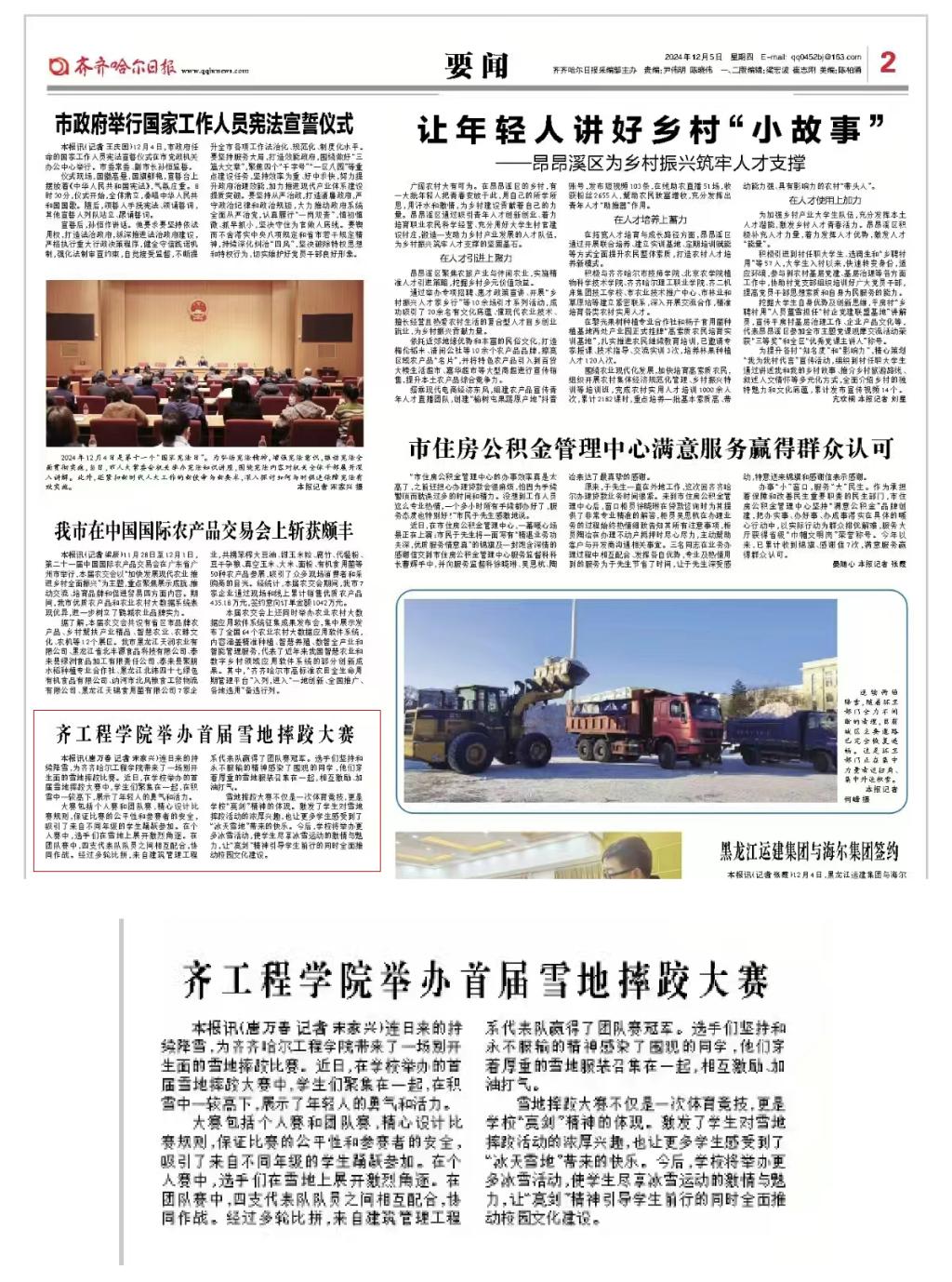 《齐齐哈尔日报》齐工程学院举办首届雪地摔跤大赛