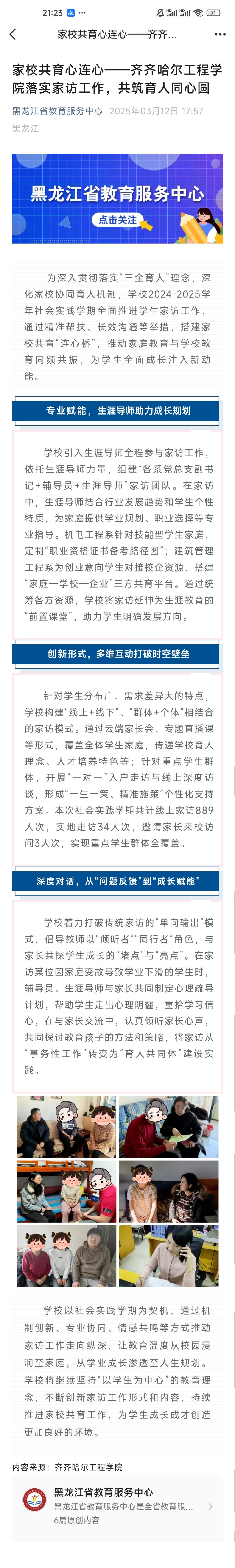 《黑龙江省教育服务中心》家校共育心连心——j9在线落实​家访工作,共筑育人同心圆