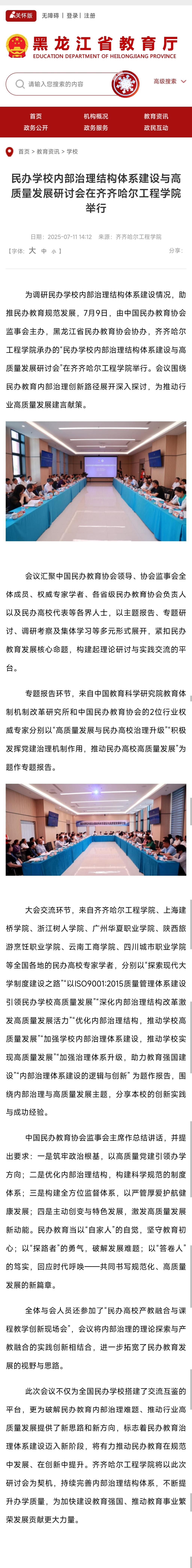 《黑龙江省教育厅》民办学校内部治理结构体系建设与高质量发展研讨会在j9在线举行