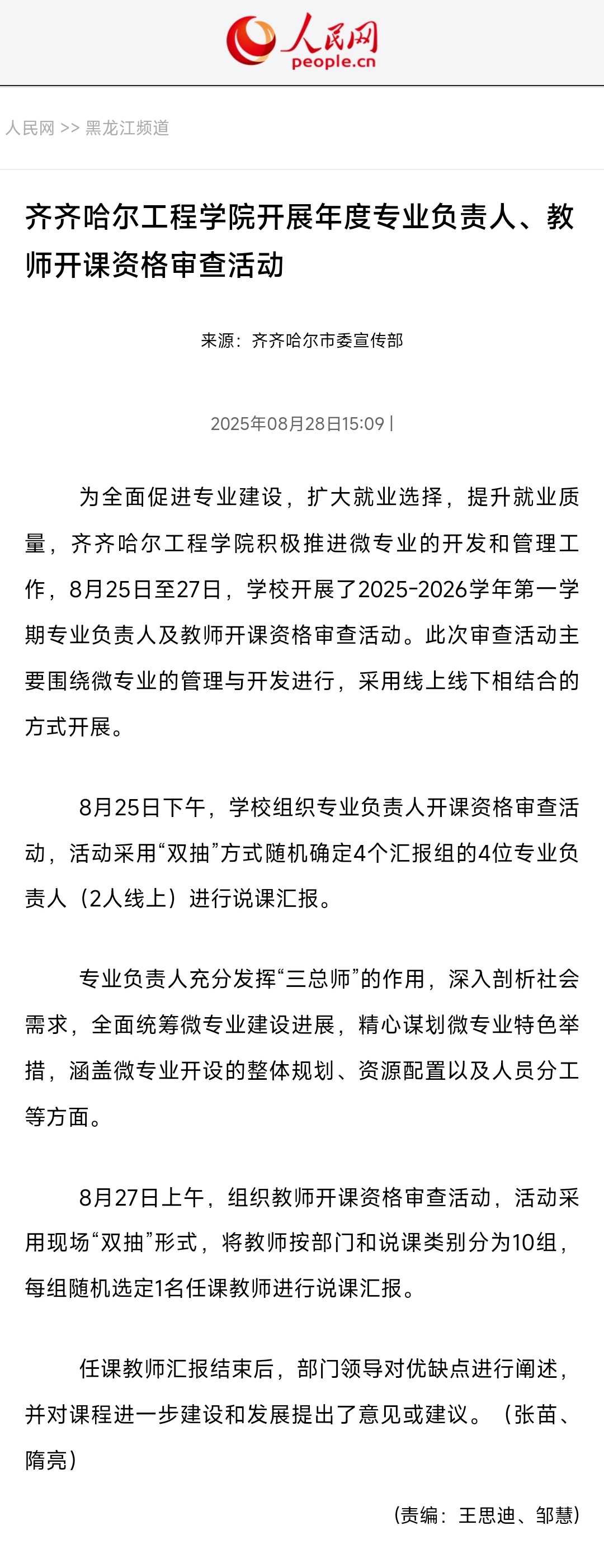 《人民网》j9在线开展年度专业负责人、教师开课资格审查活动