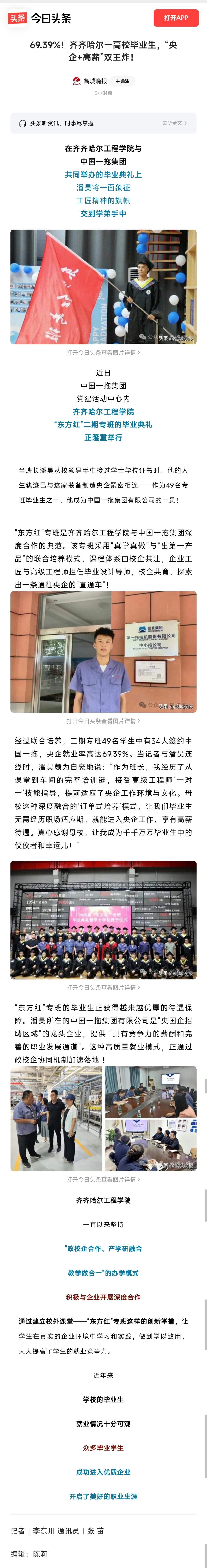 《今日头条》69.39%!齐齐哈尔一高校毕业生,“央企+高薪”双王炸!