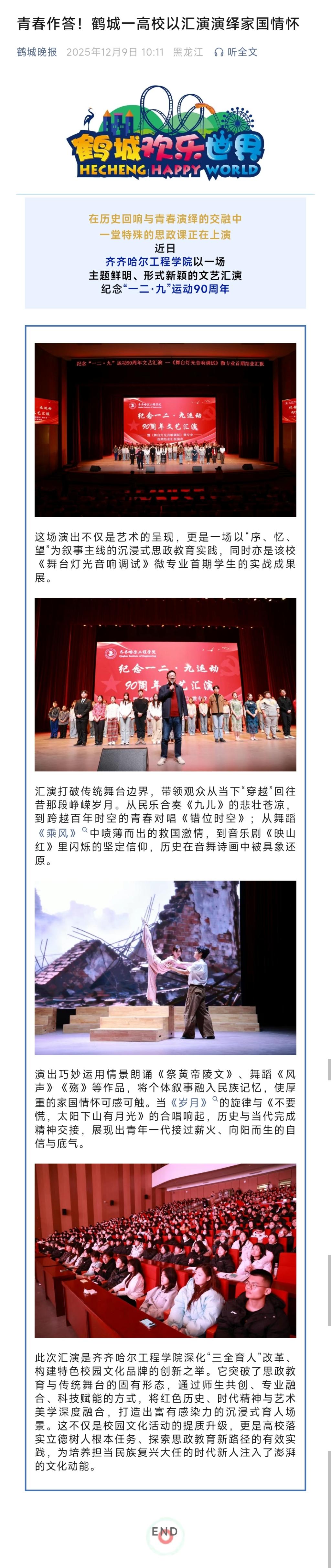 《鹤城晚报》青春作答!鹤城一高校以汇演演绎家国情怀