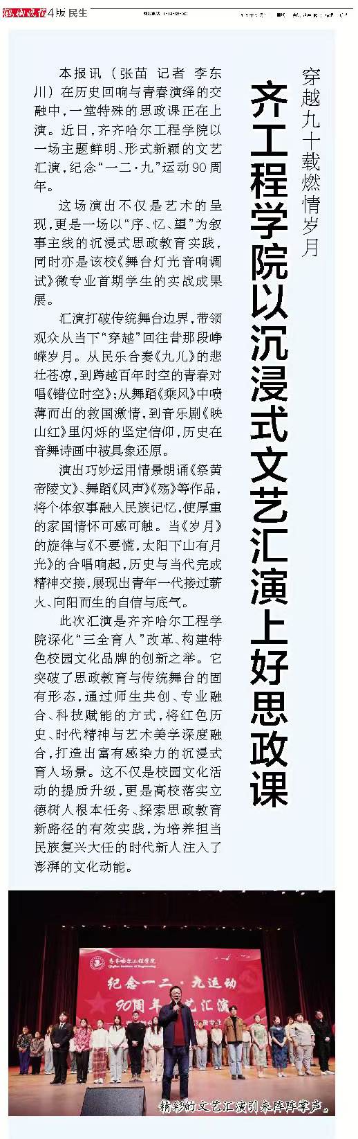 《鹤城晚报》齐工程学院以沉浸式文艺汇演上好思政课