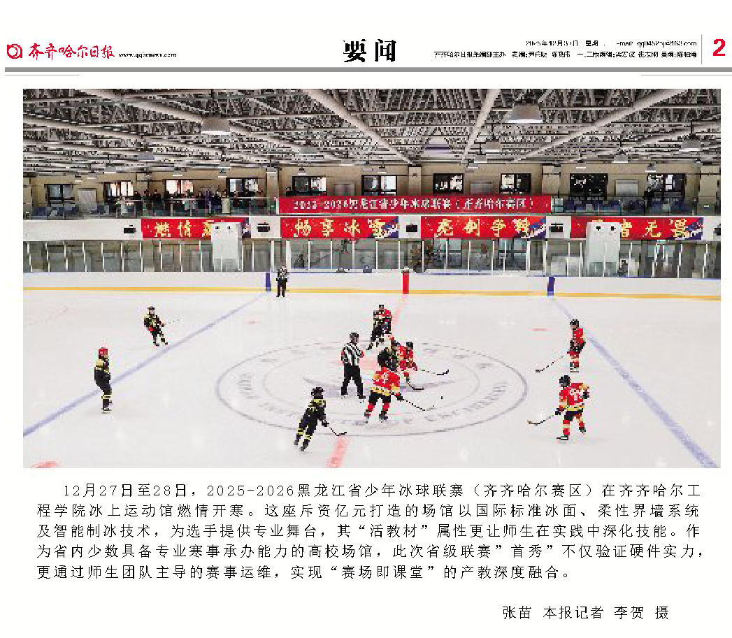 《齐齐哈尔日报》冰雪产教融合亮眼!j9在线冰上运动馆激情开赛
