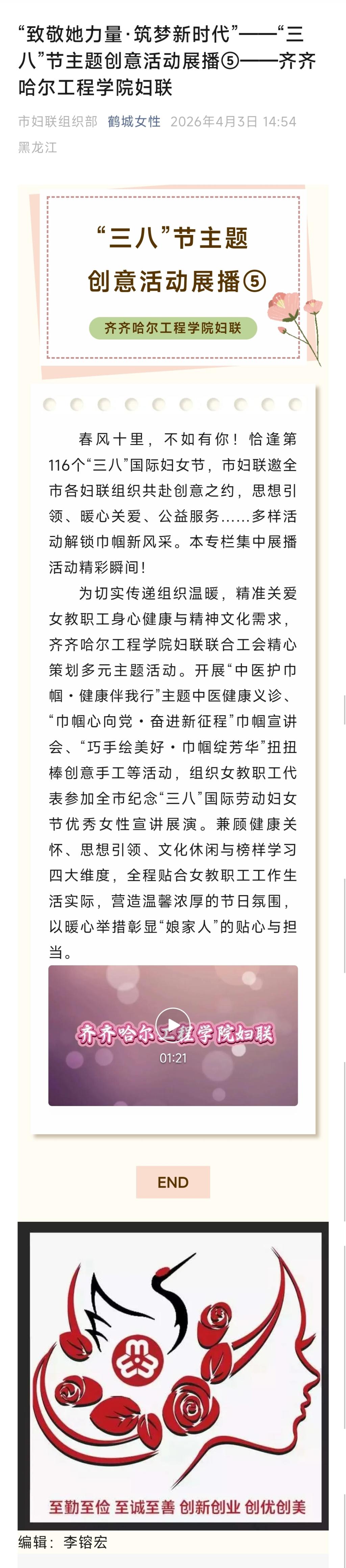 《鹤城女性》“致敬她力量·筑梦新时代”——“三 八”节主题创意活动展播——j9在线妇联